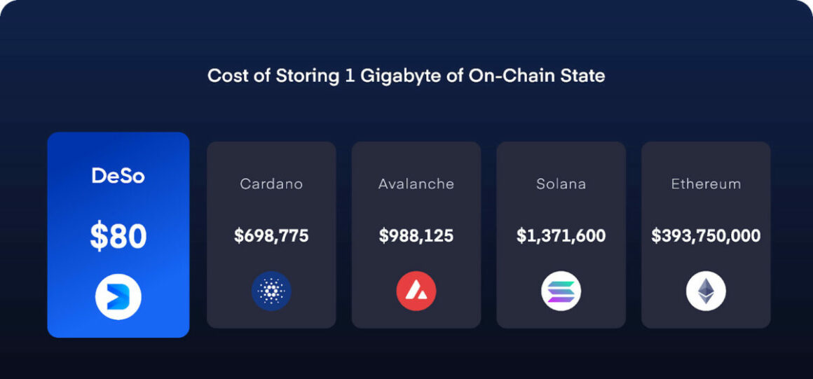 BitClout 2.0 will be built on the Decentralized Social Blockchain. According to the BitClout 2.0 white paper, “DeSo is the only blockchain that can support the storage and indexing requirements needed for a decentralized social platform like BitClout 2.0.” This is thanks to DeSo’s vastly-superior content storage costs, which make it finally feasible for apps to extend beyond DeFi to storage-intensive social applications, and much more.