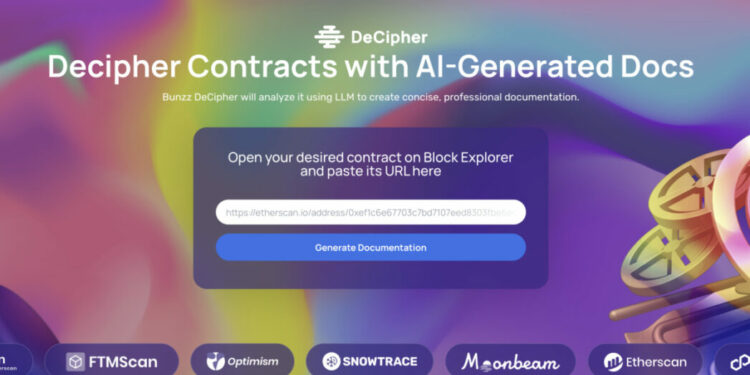 Bunzz, a Singapore-based web3×LLM tech web3-startup, is thrilled to announce the successful release of “DeCipher“, a revolutionary AI-powered tool designed to transform the process of generating Smart Contract documentation. Users can create documents from nearly all Smart Contracts existing on each Blockchain with a single click.