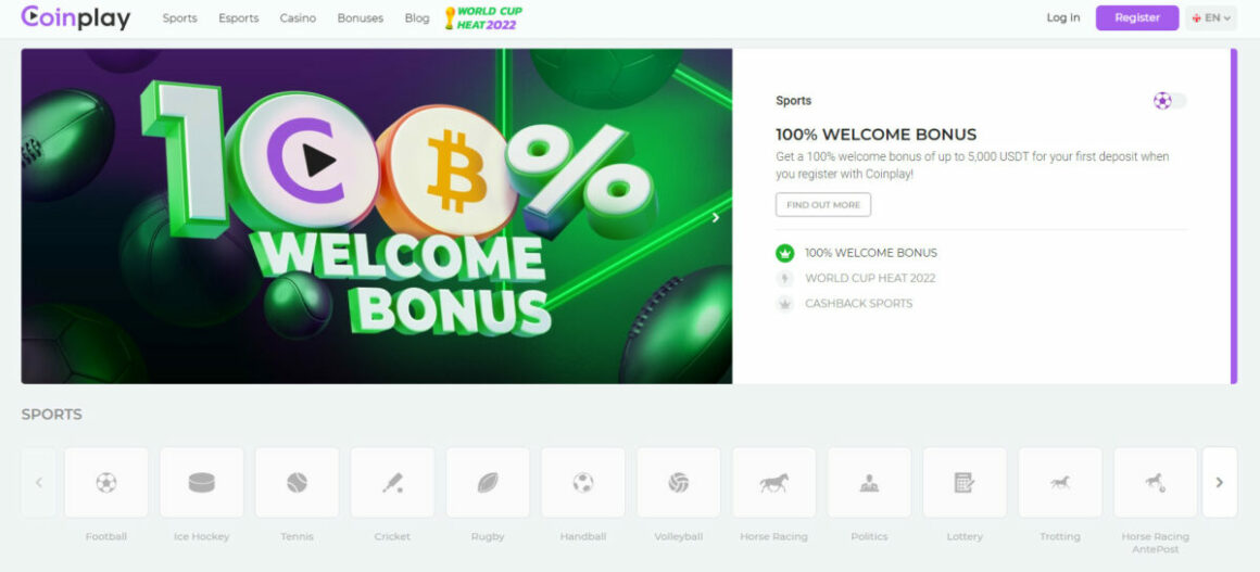 Coinplay has been launched in November 2022. It’s a new platform with many options to place a bet on sporting events and play slots or casino games. Coinplay welcomes new users with a 100% Welcome bonus of up to 5,000 USDT, which is a great chance to double players’ first deposit! One of the key features of Coinplay are their user-friendly modern interface, support for more than 40 crypto coins, fiat-crypto exchange via third-party widget, and thousands of options of what to bet on, or which game to play.